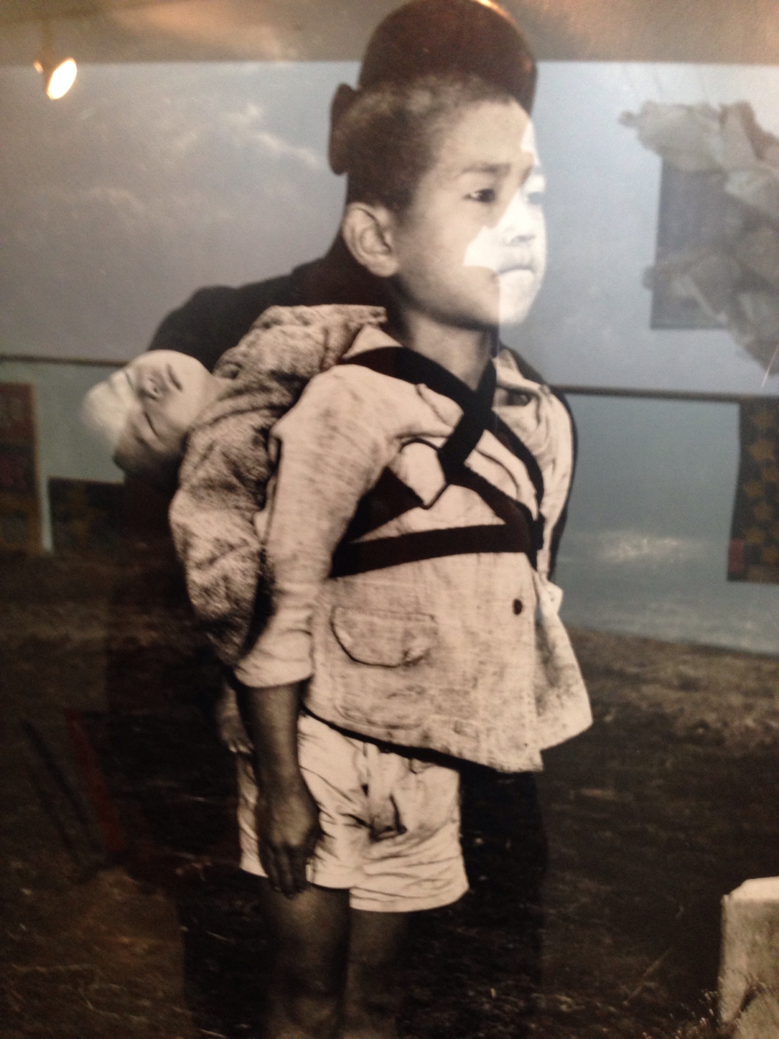 Like Hiroshima, they have a peace park here too. There is a marker showing exactly where the atomic bomb detonated 500m above. The museum tells the story most graphically. Some of the misery and horror of the time is on display. The photos and displays of children’s charred clothing tear at your heart, and for me, boil my blood. Damn the Americans for doing this to the most vulnerable of all, children and everyday people trying to survive in a war that was hard for them also. But of all of the sadness I witnessed throughout the museum, it wasn’t until I was on my way out and there on the wall I was knocked for six. On the wall was a photograph taken by an US Marine photographer, Joe O’Donnell, days after the blast and he records this tragic moment in time. A young boy has a baby strapped to his back. The boy is 5 or 6 years old and has come to a place where dead bodies are being cremated. The photographer goes on to explain that the boy stands there motionless. The attendants see the boy, approach and remove his dead baby brother from his back to cremate him. The boy then turns and walks away, his silent anguish showing itself in his blood-soaked bitten lips. To my mind, this is one of the world’s greatest humanitarian images of our time.