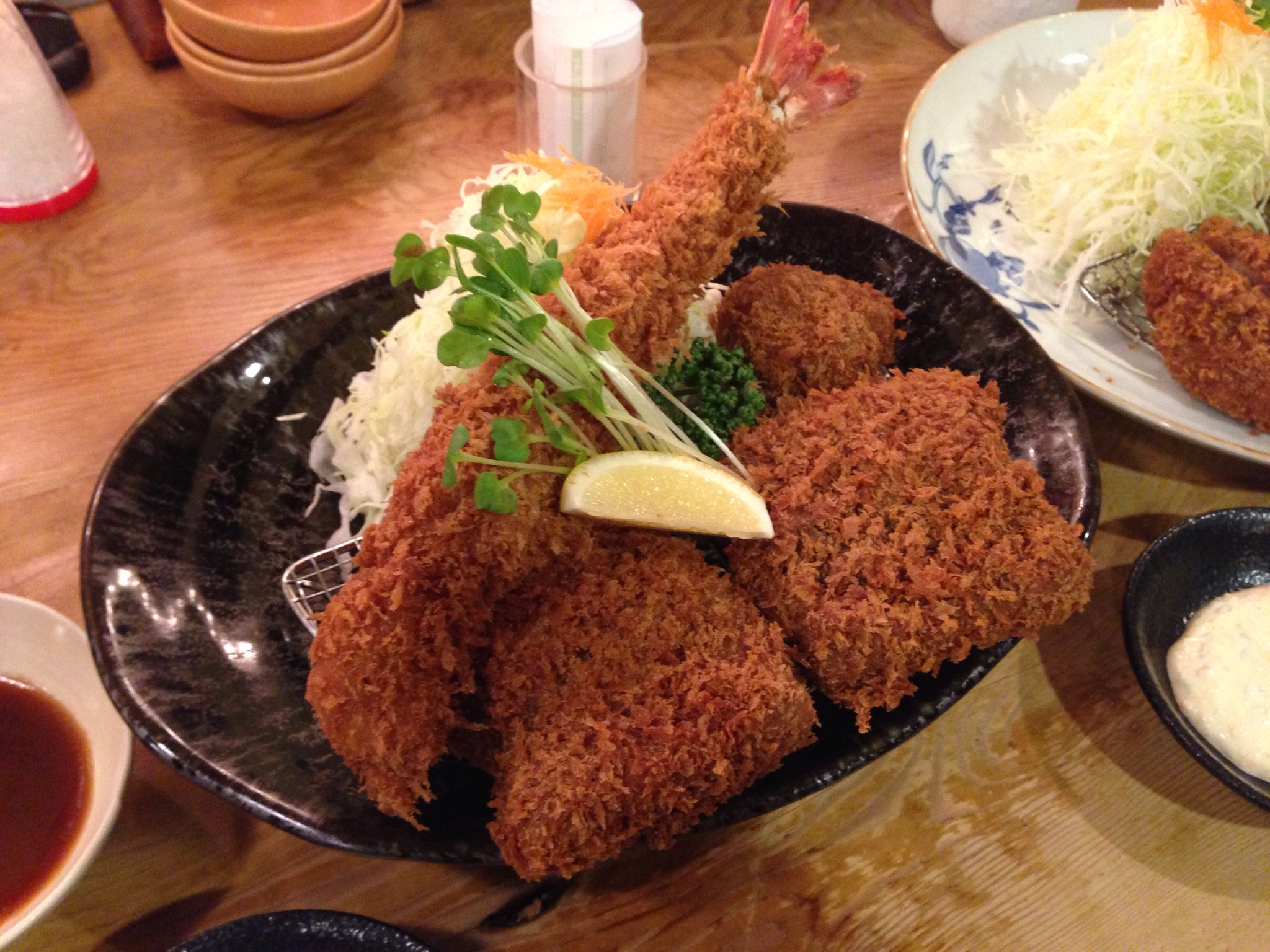 I meet Allan. He is a young native of the Carribean and has been teaching English in Japan for many years. He lives in Tokyo now but lived in Nagasaki for 5 years. He has returned to his old stomping ground for a friends wedding. We dine at his friend’s restaurant for dinner after a night stroll around his favourite parts of Nagasaki’s waterfront. It’s beautiful. While strolling around here the noise of clapping and cheering catches our attention. Like moths to a light we zone in on the noise to a sporting arena. Being far bolder than I, Allan takes us to the entrance and with adequate Japanese asks permission to enter. We’re welcome. Inside is badminton being played on many courts and competing are high schools from all over Japan. The local schools are up against competitors from outside and they are keen to win. The atmosphere is amazing. Badminton is a popular sport in Japan. I learn from Allan that Nagasaki is hosting a national high school sporting competition. This explains why I had problems finding affordable accommodation here. The local guy wins and all is good. Allan’s restaurant friend specialises in a Japanese dish called Tonkatsu, which is pork deep fried in crumbs with shredded cabbage, and rice and meso soup on the side. It’s delicious. The pork is so tasty and tender. With Tonkatsu the rice and meso soup are bottomless so topping up is included in the price. We are also dished up a plate with a large deep-water shrimp, tuna and whale in the same way. I felt naughty eating the whale and found it quite unremarkable. It tasted a lot like salty beef – hardly worth threatening a species over!