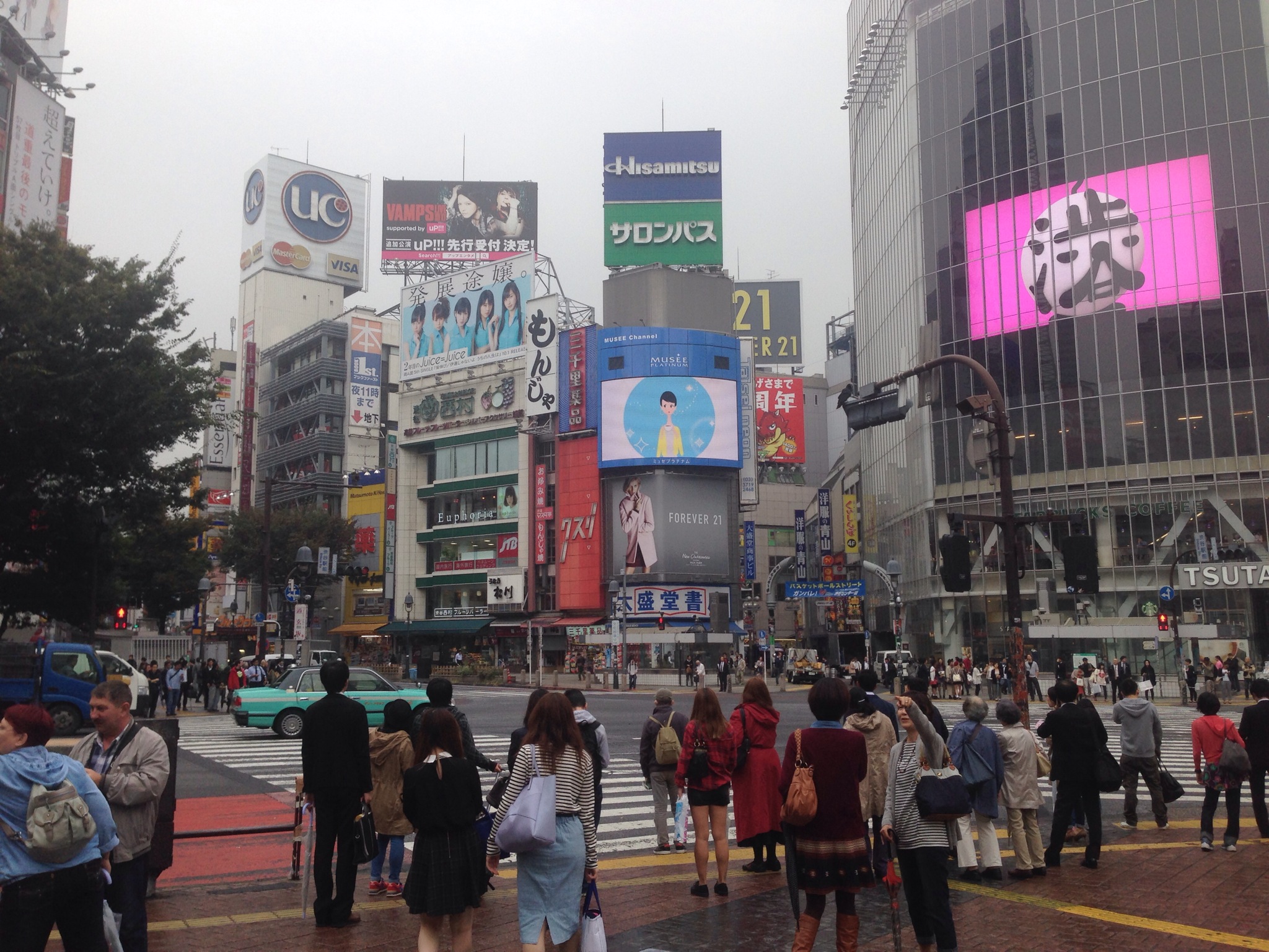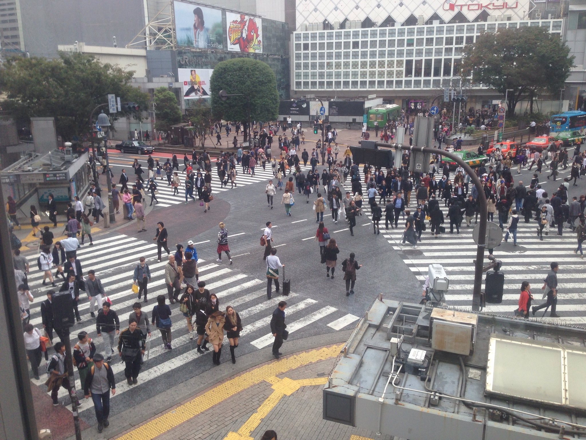 Outside of the Shibuya station is a multi directional street crossing that holds some record for the number of people who cross there everyday. Apparently over 3 million bits of humanity can cross here every day. Despite having trouble getting my head around such statistics, it’s mesmerising to watch. Shibuya station is at the junction of several train lines so all day people are streaming from the station and into the shops across the roads. Shibuya is a massive shopping precinct. The traffic flows, people bank up at the crossing, then when the lights say so, masses of people cross both ways. It’s famous. There is a multi storied Starbucks right on this corner that is a very popular viewing spot.