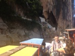 From here we moved onto a small group of islands where we can get off and either canoe or get rowed around in a small bamboo boat. These little boats are rowed forward, which is unusual for us at home but not here. It requires a certain technique. Moored to this group of islands is a small community, complete with floating houses and a school. These are traditionally fisherman who have now found a way to tap into the tourism market. They’re doing very well. We get rowed around to a few caves.