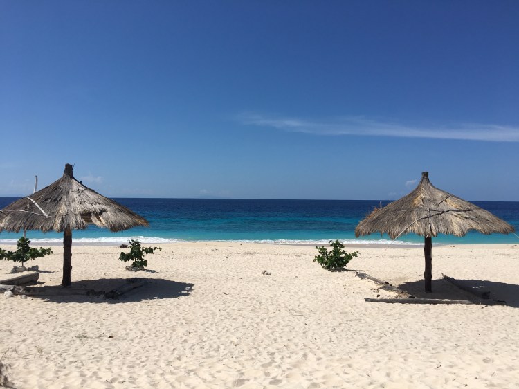 Ali’s organised a boat and for the next few hours we explore the underwater life off the coast here. It’s impressive. The colour and variety of corals and fish is easily the equivalent of what I can remember of the Great Barrier Reef. And there are little ‘petit’ reef sharks. This area has many apparently. I saw one in the distance. The other guys saw more. Of all of the wonder under the water, it was something I saw while walking up a small island peak. There’s a few trees making home for some birds. There’s a flash of brilliance and I recognize this bird. It’s a kingfisher. It looks like our azure kingfisher. What a treat.