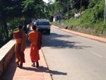 I leave for Luang Prabang today by bus. It’s a comfortable minibus and departs around 9am. Luang Prabang is not that far as the crow flues but the journey will take 5 hours, slowed by the mountainous route heavy with trucks and other buses. It’s bitumen all the way and reasonably comfortable, although one of the passengers suffers from road sickness.