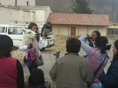 As already mentioned, Chivay sits near the head of the Colca Canyon. Already the canyon is deep here but this is only the start of the Colca River’s mighty work. The road we are on follows the canyon. On the way we pass through villages, each with their striking old church and town square. We are not the only bus on this path to the condors. Every stop we make at a village or look-out is in company with many other tour buses and of course local markets. There are always some ladies done up in traditional dress who are happy to provide you with a traditional experience for a small fee. Some even have a Llama with them for added appeal. I have heard that Llamas spit in defense. I saw my first Llama spit today and it was hilarious. This poor thing was surrounded by patting tourists and it had obviously had enough. It let blast. The victim was a young boy who came along at the wrong time. Everyone around laughed. It is more of a very wet sneeze than a spit!