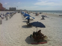 I finally get to the beach, and with very few ‘recalculatings’! Miss smug gps had it easy today! The beaches here are interesting. They are long island strips that go for miles but are only about 100 meters wide. They connect to the mainland via many bridges of course. The beach front is solid with hotels. I can’t imagine how they all find enough custom to survive. The holiday season is over now and Americans are back at school so it is relatively quiet. The beaches front the Gulf of Mexico but it feels like you are on the edge of a lake. There are no waves and the water gently folds onto blindingly white sand. Brown pelicans work the waters just off shore bomb-diving for food. They are about a quarter smaller than our pelicans but are a beautiful brown colour. The weather is sweat.