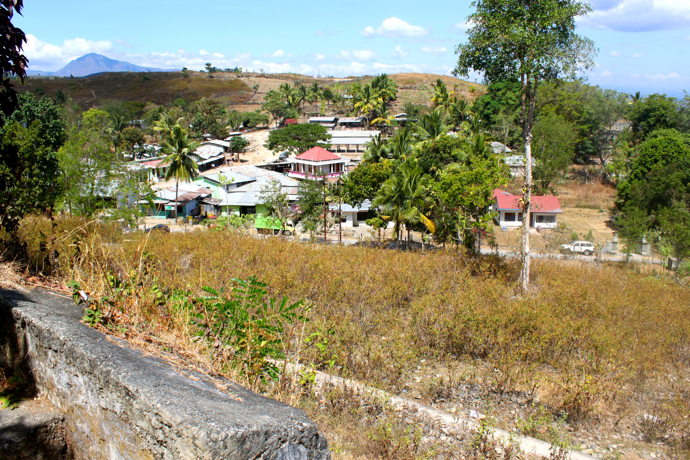 I walk around the old Portuguese fort. During Australia’s role in the UN Peace Keeping forces, a regiment was initially based here in Balibo and camped in this old fort. The views from here are spectacular. In one direction you overlook this pretty village and on the other side are great views of the coast. We’re right on the border here so you can look into Indonesian West Timor from here.